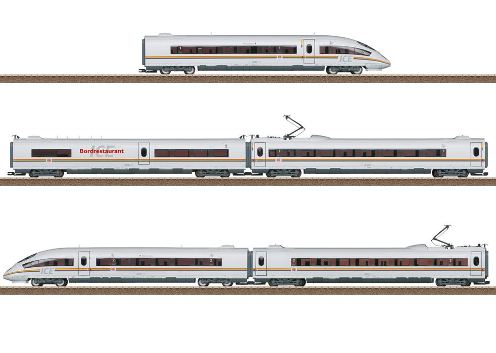 Die Grundgarnitur 22784 ist mit dem Ergänzungswagen-Set 23391 auf eine vorbildgerechte, 8-teilige Einheit erweiterbar. Dieses Modell finden Sie im Märklin H0-Sortiment unter der Artikelnummer 37784.