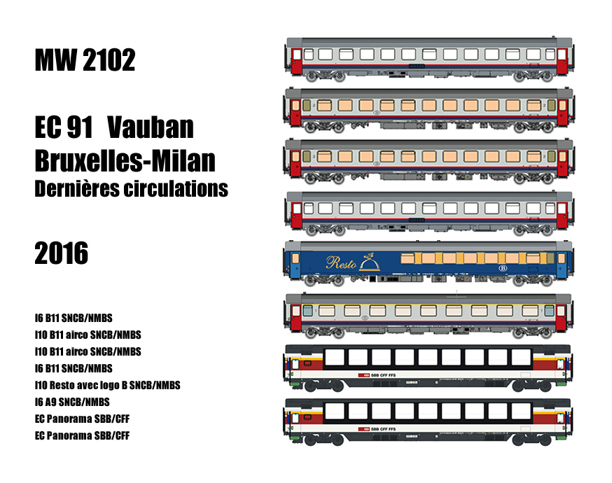 MW 2102 8 tlg. Personenwagen-Set Brüssel-Mailand EC 91 Vauban (2016)