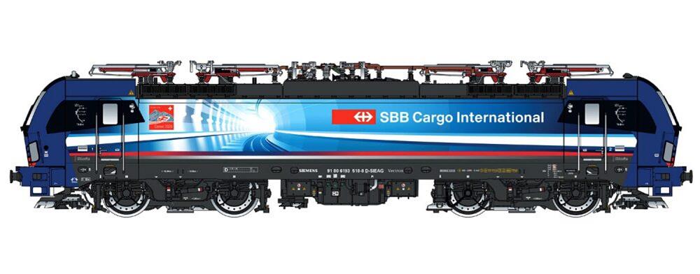 SBB Cargo International Vectron MS, 91 80 6193 518-8 D-SIEAG, „Ticino“, 4 Stromabnehmer, ausgerüstet für D/A/CH/I/NL, ultramarinblau, Design Ceneri 2020, Epoche VI (2019), AC