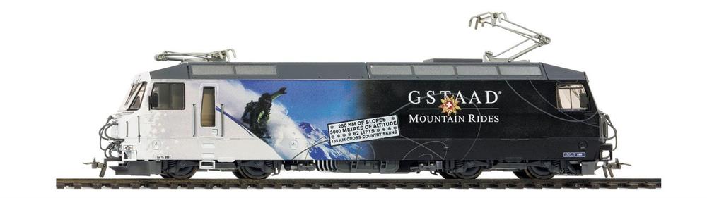 Passend zu den Panorama- bzw. Niederflurwagen im „GoldenPass“-Design bieten wir die optisch auffällige Lok „Gstaad Mountain Rides“ mit unterschiedlichen Sportmotiven für die H0 Normalspur in Gleich- und Wechselstrom an.