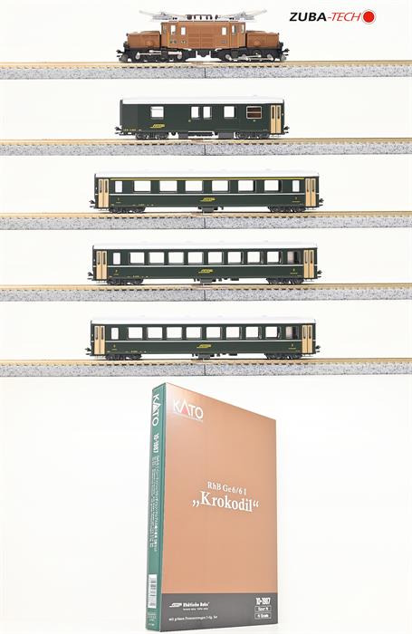 Kato 10-1987 E-Lok Ge 6/6 I 415 Krokodil + 4 EW I Wagen grün RhB, Spur N