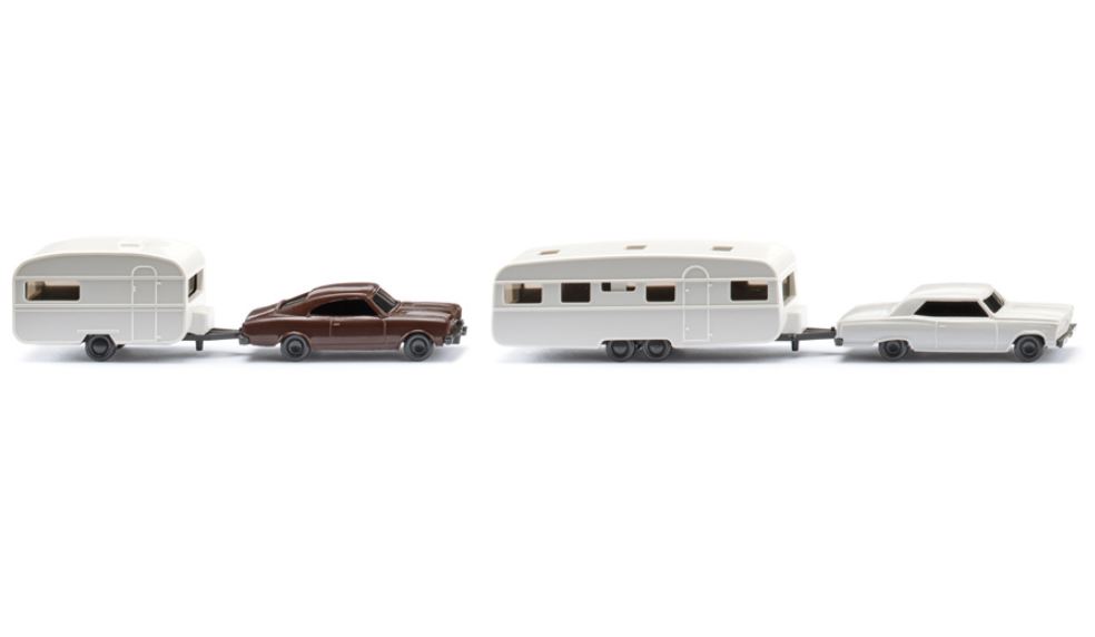 Wiking 92211 Zwei Wohnwagengespanne mit Opel Rekord und Chevy Malibu