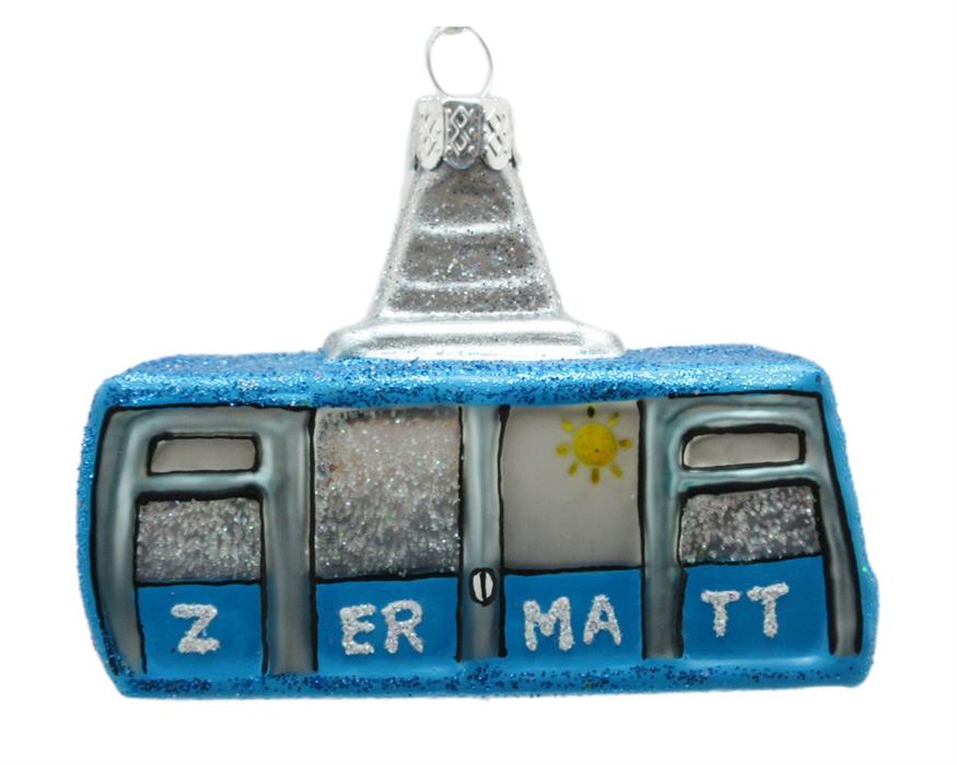 Glas Ornament Schweizer Luftseilbahn blau Zermatt