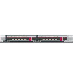 Modell: 2-teiliges Ergänzungswagen-Set zur Erweiterung des Hochgeschwindigkeitszuges TGV INOUI, Artikel 37798, auf eine 10-teilige Einheit. Serienmäßig eingebaute Innenbeleuchtung mit wartungsfreien warmweißen Leuchtdioden (LED). Innenbeleuchtung wird versorgt über die durchgehende elektrische Verbindung des ganzen Zuges. Beide Mittelwagen sind fest miteinander gekuppelt. Kulissenführung in den Jakobs-Drehgestellen. Maßstäbliche Nachbildung, daher befahrbarer Gleisbogen ab Mindestradius 360 mm bei freiem Lichtraum.