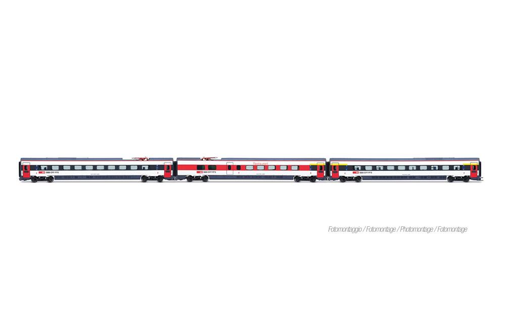 3-tlg. Zwischenset des ETR 610, 1. Serie, ICN-Farbgebung mit roten Türen der SBB, Epoche VI.