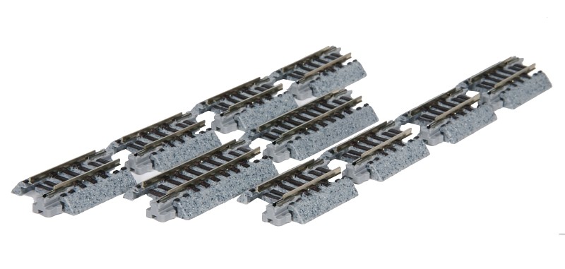 KATO bietet ein hervorragendes Spur N-Gleissystem mit einem graugesprenkelten Gleisbettungskörper (feine Körnung) an, das exakt maßstäblich, extrem stabil und ideal für alle Spur N-Modelle geeignet ist. Der Bettungskörper besteht aus elastischem Kunststoff und ist ca. 25 mm breit. Die Gleise lassen sich über Steckverbindungen spielend leicht miteinander verbinden und rasten mit einem hörbaren "Klick" ein.