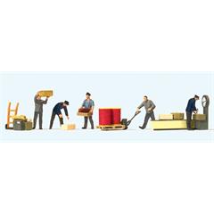 Preiser 10581 Am Güterbahnhof, Set mit 5 Figuren und Zubehör
