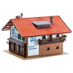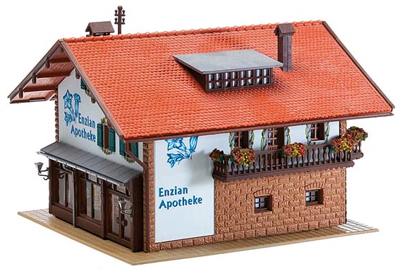 Wohnhaus im alpenländischen Baustil. Im Erdgeschoss befindet sich die »Enzian« Apotheke. Einrichtungs- und Dekor-Teile liegen bei.