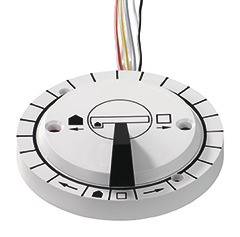Drehscheiben-Schalter zur Betätigung der elektrisch angetriebenen Drehscheiben mit elektrisch einzeln zuschaltbaren Gleisabgängen.