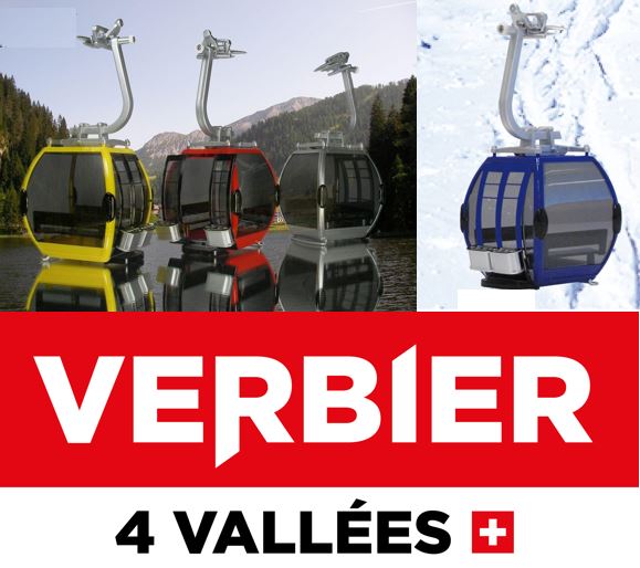 Omega IV Gondel für 8 Personen in Siber mit Logo Verbier, Im Massstab 1/32.