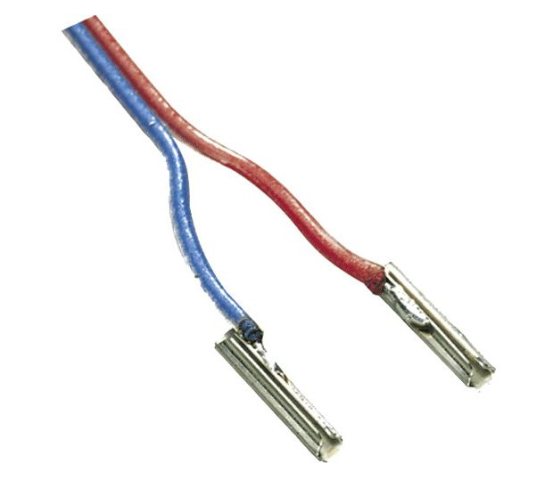 2-polig mit Doppeldraht für Fahrstromanschluss. Beim biegsamen Gleis 14901 als mechanische Gleisstück-Verbindung geeignet.