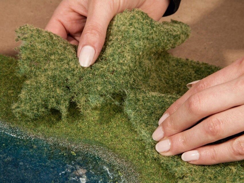 Hauchdünnes und hochflexibles Trägermaterial: Damit ist es möglich die Foliage auch auf zerklüfteten Oberflächen anzuwenden oder in einzelne Stücke zu zerrupfen und auch punktuell einzubauen.