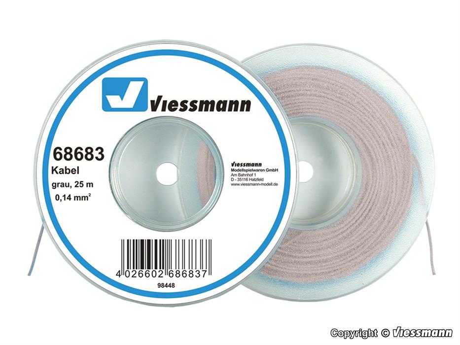 Viessmann 68683 Kabel auf Abrollspule 0,14 mm², grau, 25 m