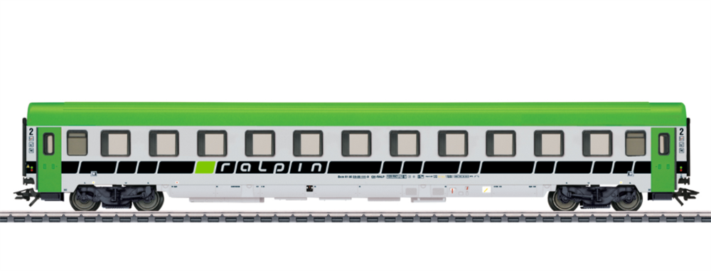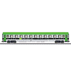Modell: Auf Basis eines Reisezugwagens 2. Klasse Bauart Bmz. Befahrbarer Mindestradius 360 mm. Typspezifisch gestalteter Unterboden. Fiat Drehgestelle Y0270 S mit Schlingerdämpfer und mit Magnetschienenbremse. Vorbereitet für Stromführende Kupplung 7319 oder Stromführende Kurzkupplung 72021, Innenbeleuchtung E73400/73401, Schleifer 73406 und Zugschlussbeleuchtung 73407. Länge über Puffer ca. 28,2 cm. Gleichstromradsatz E700580.